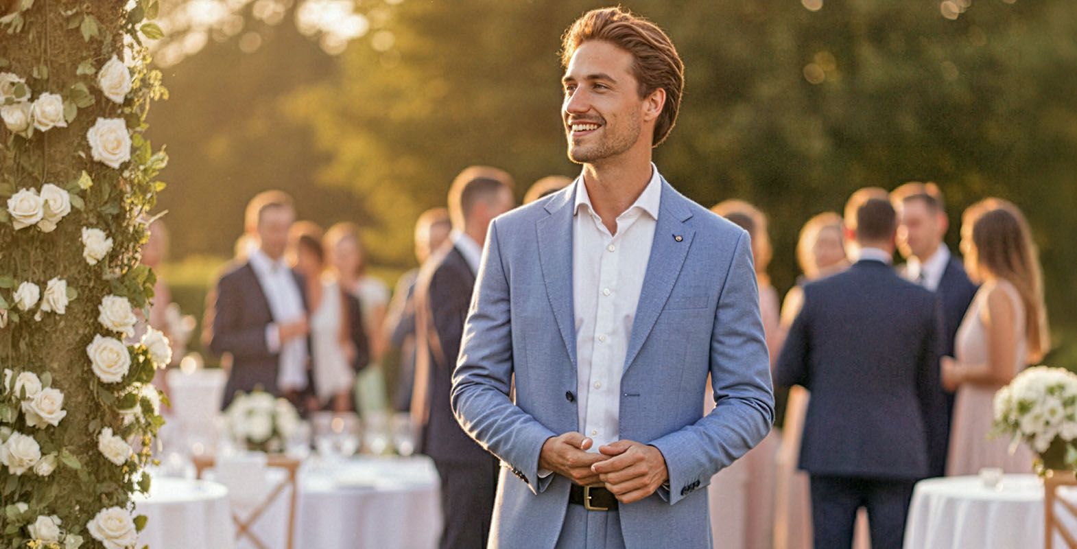 Från en formell till en avslappnad bröllop: En blå kostym är ett stilfullt val för varje säsong och passar bra med nästan alla färger.