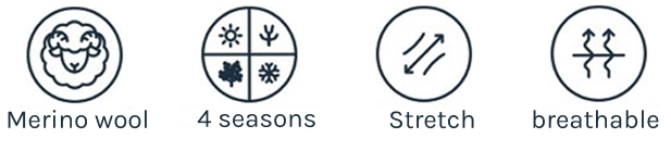 Merino sheep yield up to five kilos of wool annually thanks to their skin folds and rich fleece. After selection and washing, the resulting high-quality merino wool is ten times finer than traditional wool, super soft, and scratch-free. The fibers are combed, spun, and processed into clothing that breathes, adapts to your body temperature, and is antibacterial. Merino wool stays fresh with just a little airing—and offers optimal comfort year-round.