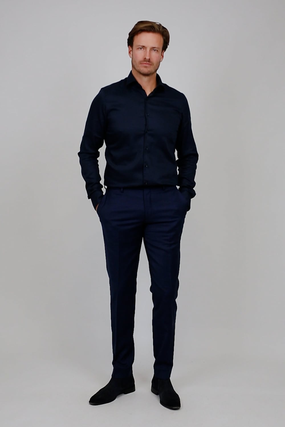 Suitable Shirt Extra Long Sleeves Twill Navy